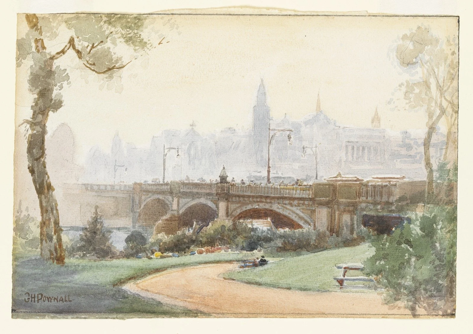 Art Princes Bridge and the spire of St. Paul's under construction 1931